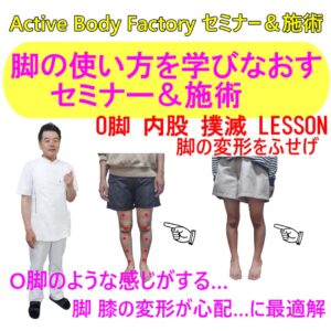 O脚や内股 膝の不調 足首の不調 外反母趾にお悩みの方への セミナー&施術です。